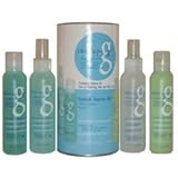 The therapy-g System Starter Kit is a 45-day treatment for fine or thinning hair and hair loss, promoting color and thicker, fuller hair. The therapy g complex of proteins, vitamins and botanicals is formulated to be the most effective treatment and fashion styling system for thinning or fine hair.Tryptobond Guard is a patented cationic (attaches itself to the hair) ingredient designed to protect the hair from sun exposure damage, such as breakage, styling stress, surface damage, and color changes.Directions:Wet hair thoroughly, gently lather shampoo throughout hair and scalp. Gently massage scalp for 15 seconds. Leave on hair for 30 seconds and rinse out. After cleansing with antioxidant shampoo, apply 12 sprays of follicle stimulator throughout scalp. Gently massage scalp for 15 seconds. Avoid running down face. Rinse after 1 minute. Follow with conditioning treatment throughout the hair; rinse and towel-dry Apply hair volumizing treatment throughout hair into towel dried hair. Do not rinse out. Style as desired.